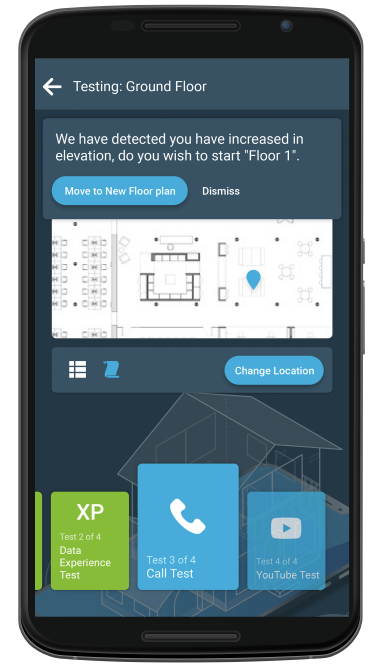 Advanced in-building testing, with room-by-room and floor-by-floor mapping